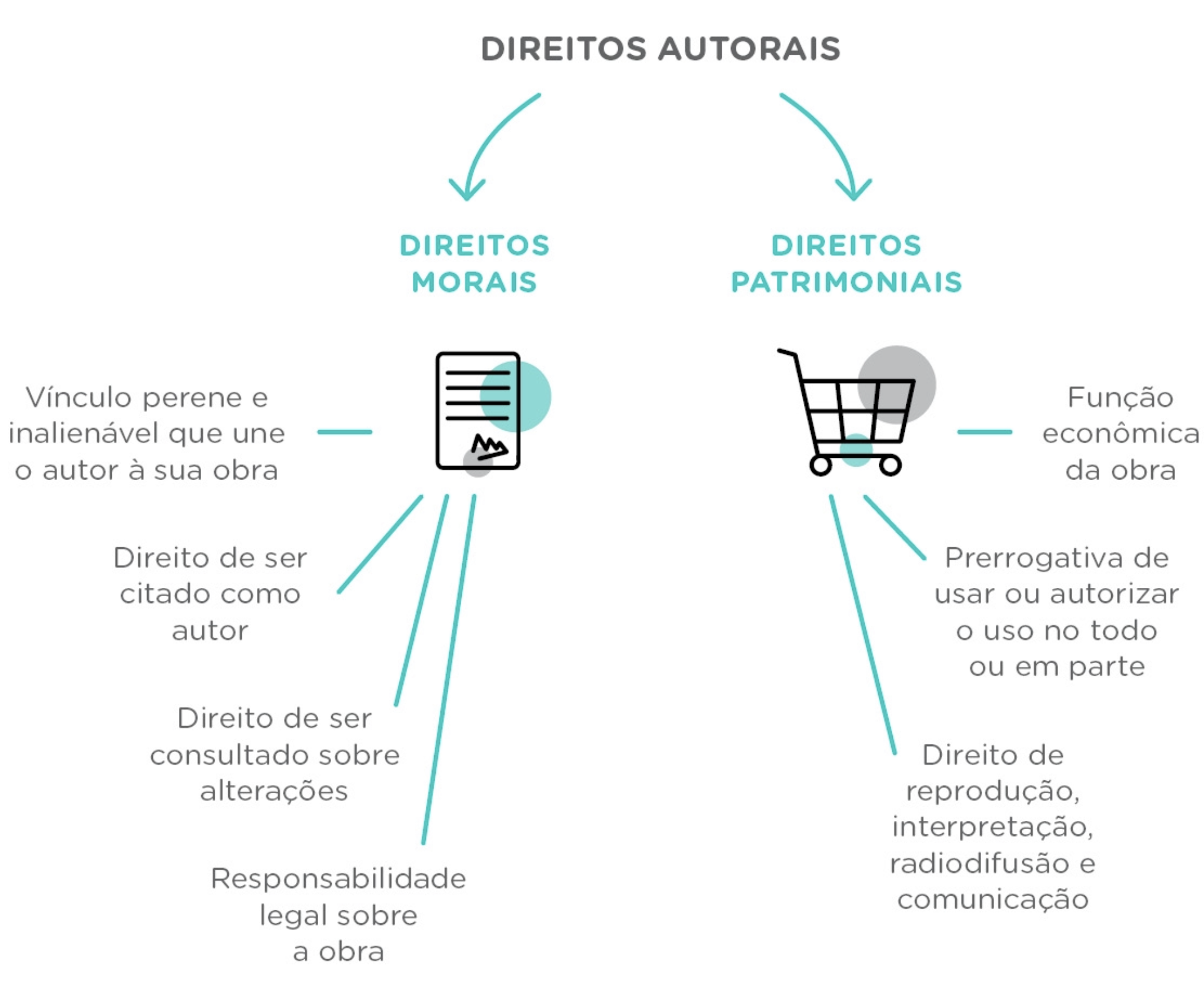 Legenda: Aspectos dos direitos morais e patrimoniais na preparação de conteúdos para EaD