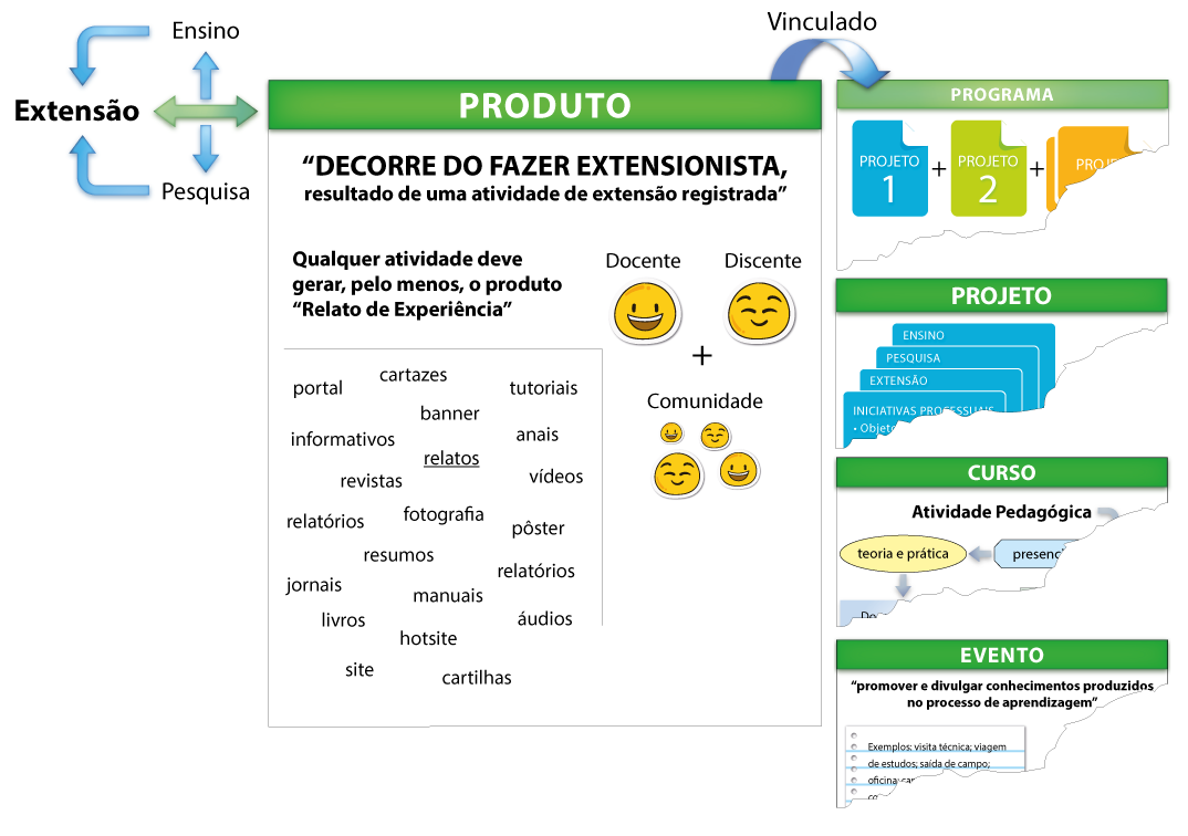 Produto: é a atividade que se caracteriza por ser decorrente do fazer extensionista, sempre resultado de uma outra atividade de extensão com registro institucional.