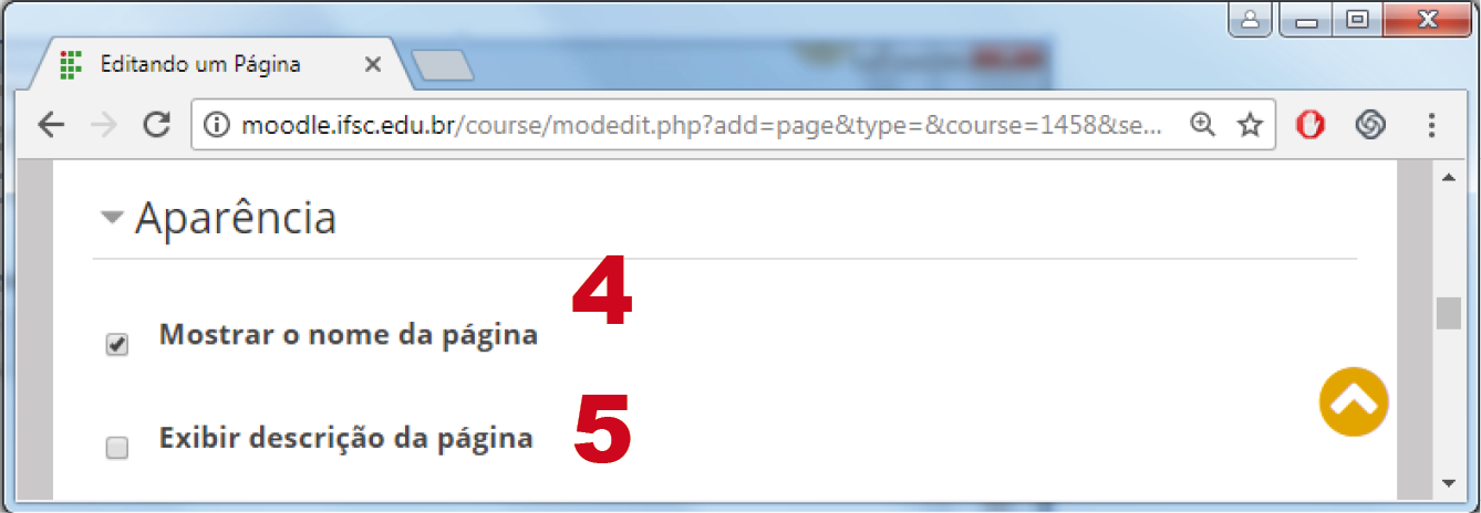 4. Mostrar o nome da página: se habilitada, apresenta o nome da página inserida, na parte superior da mesma.