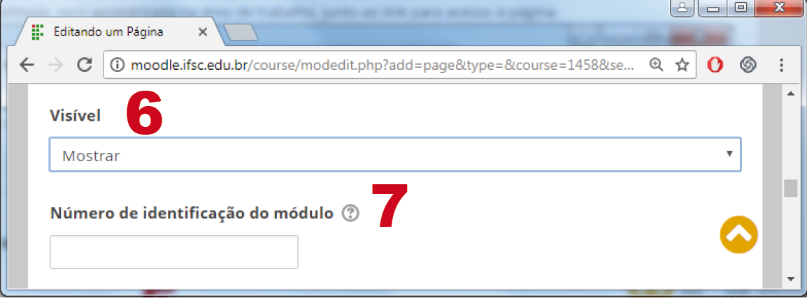 6. Visível: neste campo, você define se esse arquivo estará visível ou oculto logo após sua criação. Se optar que o recurso seja visível para os alunos, escolha a opção "Mostrar", ou se optar que o mesmo não fique visível, escolha a opção "Ocultar".
