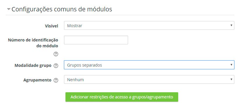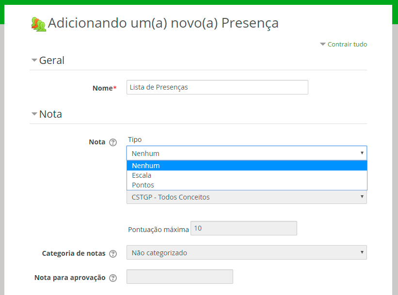 Selecione o tipo de notas: "Nenhum, Escala ou Pontos" se for utilizado.